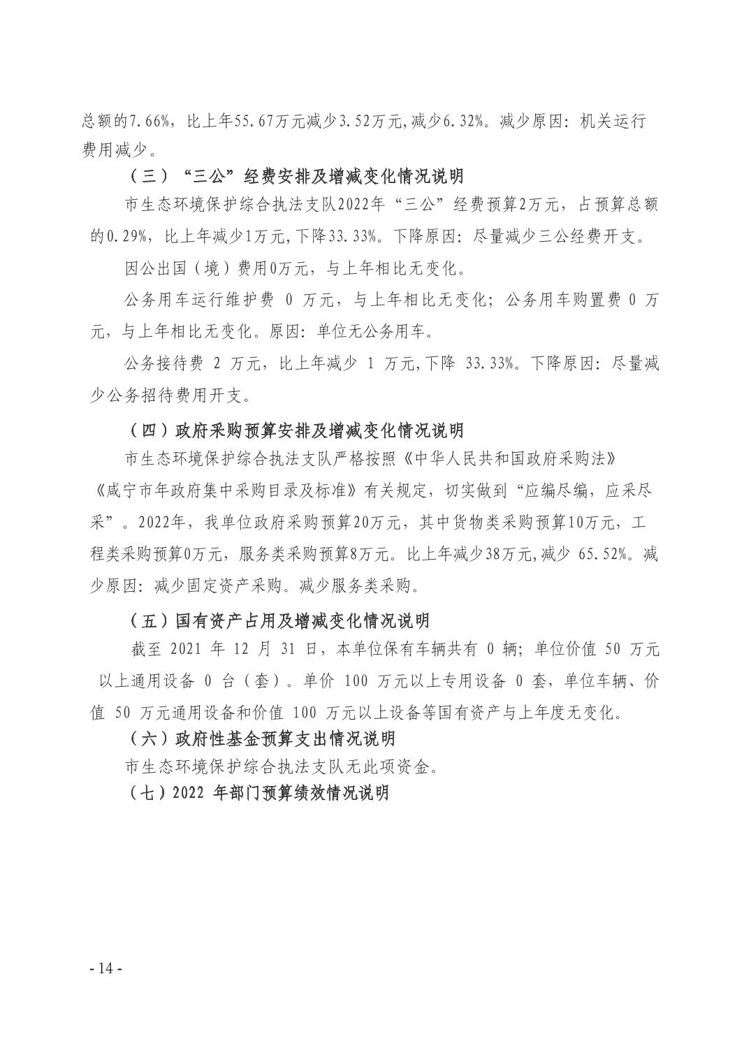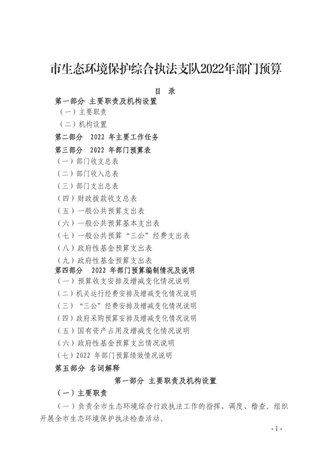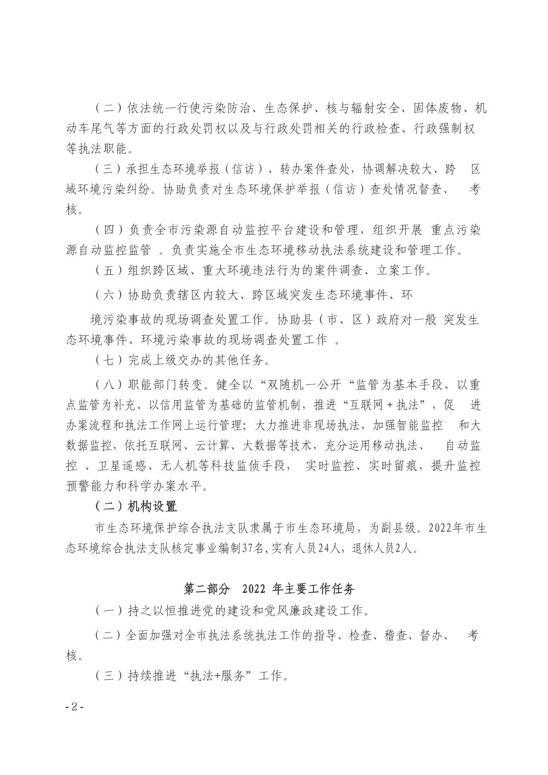 名 称: 市生态环境保护综合执法支队2022年部门预算 发布日期: 2023年08月09日