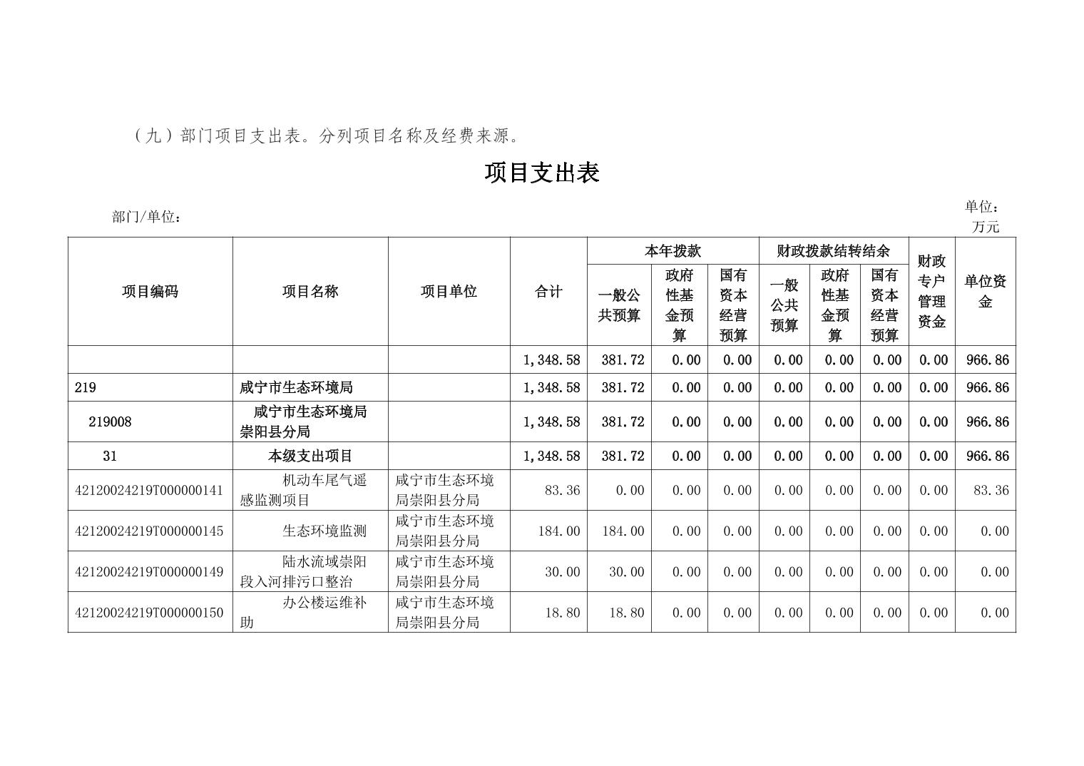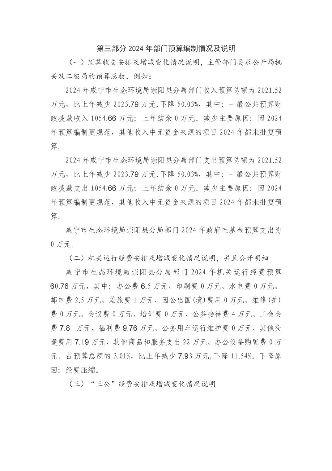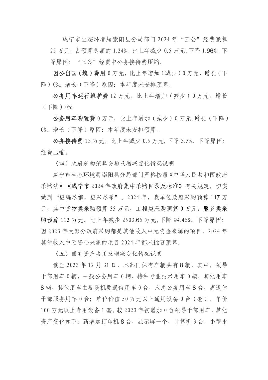 咸宁市生态环境局崇阳县分局2024年部门预算公开说明